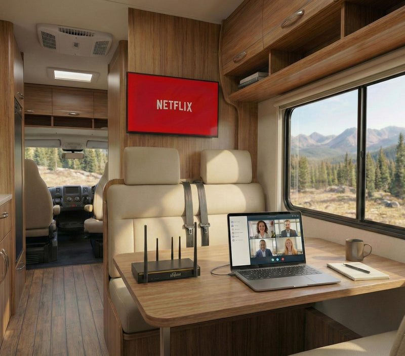 Netflix, YouTube, Disney+, live sports — buffer-free on every screen in your home or RV.